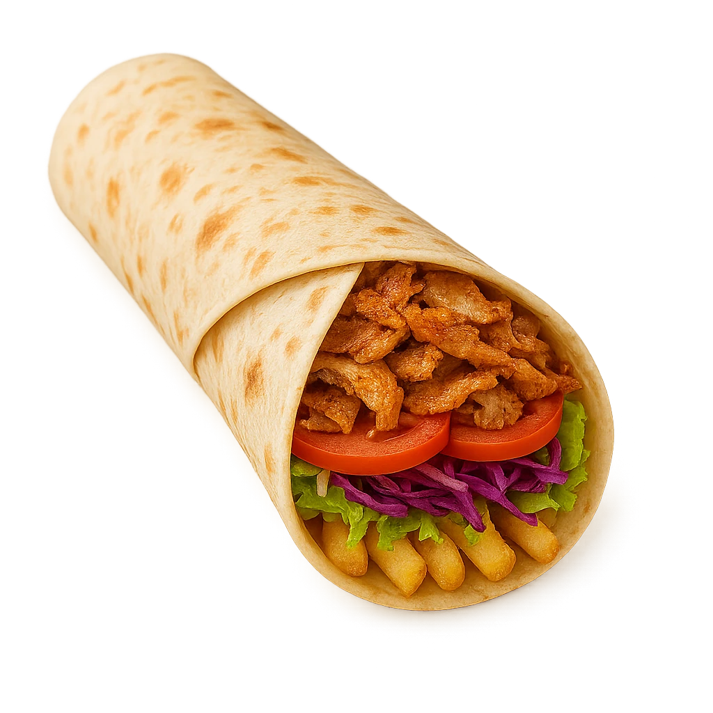Saftiges Hühnerfleisch, knackiger Salat, Tomaten, Zwiebeln und Souce – gerollt im ofenfrischen Fladenbrot für den perfekten Genuss unterwegs